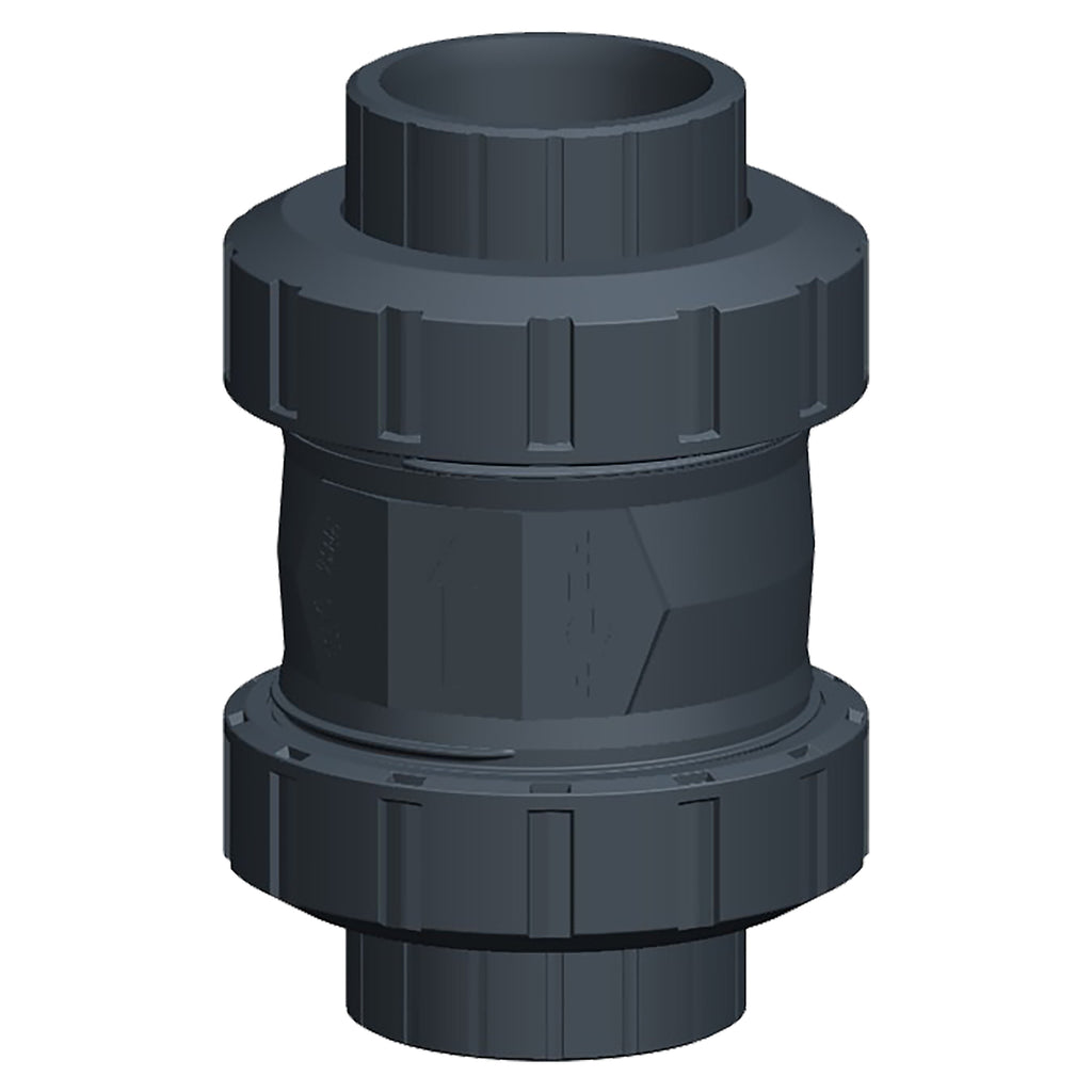 The Check Valve Type 561 is made of PVC and is designed without a spring. It features solvent cement sockets and complies with ASTM standards. The valve includes two NPT threaded valve ends, providing a secure and reliable connection for various piping systems.